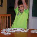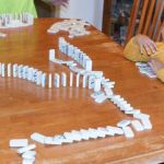 A favorite playtime activity in our house is creating a Domino Run. This activity is accomplished by lining dominoes up in a continuous line that is straight or curvy or spiral in shape. You stand them up on one end and line them up close enough together so that when one falls, they all will knock the one after it down. Use care when setting up a Domino Run as one wrong move or slip of the hand will spark a chain reaction of dominoes that will leave you starting over.